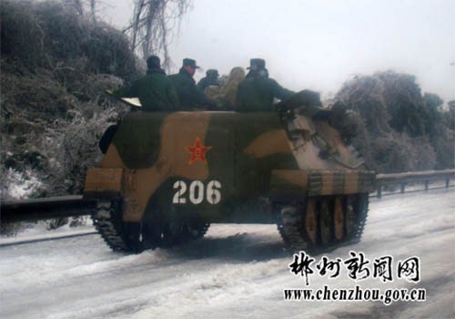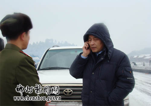 1月28日,剛剛從長(zhǎng)沙開完兩會(huì)返郴的市委副書記、市長(zhǎng)戴道晉馬不停蹄地趕到京珠高速,看望受困人員,并現(xiàn)場(chǎng)指揮交通疏導(dǎo)和救援行動(dòng)。在京珠高速良田服務(wù)區(qū),戴道晉召開現(xiàn)場(chǎng)辦公會(huì),他要求負(fù)責(zé)交通疏導(dǎo)的人員一定要堅(jiān)守職責(zé),要在最短的時(shí)間內(nèi)確保被困在高速路上的人員及時(shí)疏散。同時(shí),湖南省郴州軍分區(qū)動(dòng)用裝甲車碾冰。