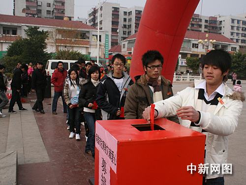 中新網(wǎng)韶關(guān)2月10日電 (馮昶 朱祖純 曾誠(chéng)) 大年初三,廣東南雄市三影塔景區(qū)廣場(chǎng)內(nèi)人流涌動(dòng),一場(chǎng)聲勢(shì)浩大的“我與災(zāi)民心連心”募捐活動(dòng)正在舉行,來(lái)自各條戰(zhàn)線的干部、企業(yè)等數(shù)千人紛紛伸出援助之手。引人注目的是一批當(dāng)?shù)卦谕獯蚬さ那嗄耆恕W(xué)生和社團(tuán)組織自發(fā)捐款,用真情表達(dá)對(duì)今年冰雪災(zāi)區(qū)民眾的一片愛(ài)心。