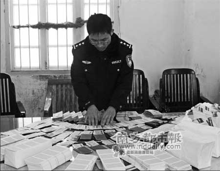 1月31日,平頭進入白云區瑤臺村××號。偵查員發現除了平頭之外,另兩人為一少年和一個20多歲的女子。2月3日,偵查員小王肩扛一桶純凈水敲開了門。小王一眼瞧見客廳的茶幾上堆滿了車票和紅包,地板上擺放有打印機、裁紙刀,果然是制販假票的窩點!小王大聲咳嗽了一聲,守候在外門邊的偵查員聞聲一擁而入,分別抓獲了正在睡覺的平頭和女子。