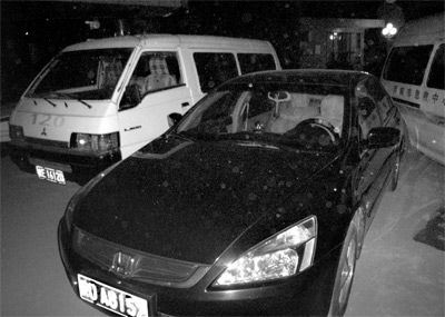 15日晚11時45分,渭南市中心醫院門診樓前的空地上,兩輛120急救車左右夾擊,將一輛黑色小轎車“困”在其中。這輛車牌號為陜OA8152的黑色轎車裝飾較為豪華,副駕駛的靠背平放,儀表盤上方有一本車輛行駛證。