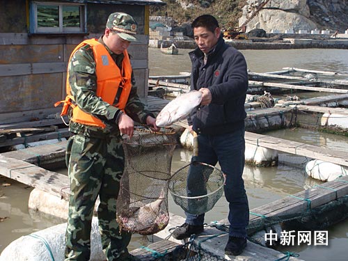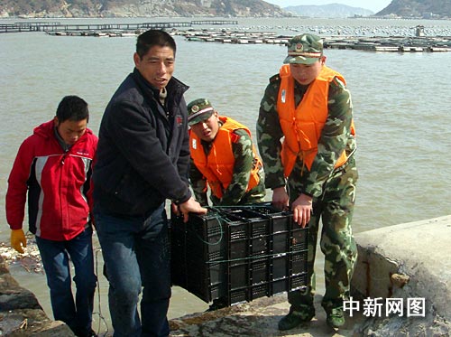 持續(xù)寒冷的天氣連魚也受不了,春節(jié)過后南麂島網(wǎng)箱里的養(yǎng)殖魚開始陸續(xù)出現(xiàn)凍死現(xiàn)象,魚排上漂浮著一條條被凍死的魚兒。災情發(fā)生后,溫州邊防支隊南麂邊防派出所迅速組織官兵幫助漁民群眾清理打撈死魚,并及時將未凍死的魚轉移到溫室中進行養(yǎng)殖,盡量降低災害帶來的損失。