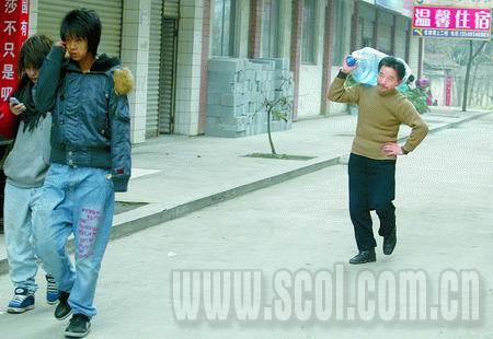 由于兒子楊曉勇在學校經常勤工儉學,老師和學校領導都對這個貧困的家庭有所了解,加上向自己的專業老師極力推薦,父親楊選明到成都的第二天就被安排了一堂著衣模特課。想到自己來這里是為了給兒子掙學費和生活費,老人慢慢忍受著教室里幾十名男女學生的目光和畫筆的雕琢!拔野阉麄兿胂蟪晌以谔沾蓮S做的一只只泡菜壇子,一下就適應了!”那天,楊師傅掙了5元錢,很開心,他說這相當于十斤稻谷的錢了。