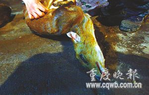 若貨積壓卻暫時辦不到證咋辦?“到黑市賣!”黃某說,去冬以來,他有130頭野山羊這樣賣出:60頭被人當年貨買走;30頭發貨到重慶城餐館;40頭運到秀山縣城的餐館。