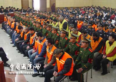 由于該案被告人眾多,性質惡劣且案情復雜,為確保庭審順利進行,負責審理此案的滁州市中級法院刑事審判庭在庭前作了周密部署和精心準備。從當天的庭審情況看,無論是提押被告人、法庭調查、還是安全保衛、后勤保障等各項工作均井然有序,進展順利,近200名群眾到場旁聽了案件審理。(作者:梅克寒 馬正山)