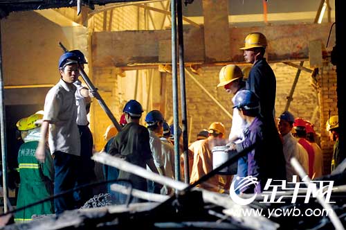事發后,省委常委、市委書記朱小丹、市長張廣寧迅速作出批示,要求全力搶救被困人員,查明事故原因。市政府副秘書長潘安、市應急辦主任鄧慶彪及市公安局、市公安消防局、市國土房管局、市建委、市衛生局、市安監局、白云區委、區政府主要領導和相關部門負責人第一時間趕到現場,組織開展搶險救援工作。