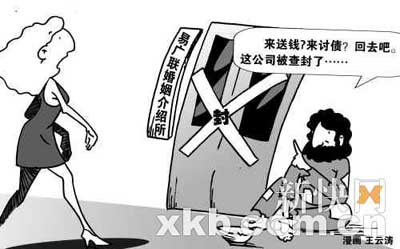 據(jù)悉,根據(jù)《公司法》、《公司登記管理條例》和《國務(wù)院辦公廳關(guān)于加強涉外婚姻介紹管理的通知》中關(guān)于嚴(yán)禁成立涉外婚姻介紹機構(gòu)的規(guī)定,涉外婚姻介紹屬國家禁止經(jīng)營的項目,經(jīng)市工商管理部門認(rèn)定,易廣聯(lián)婚姻咨詢有限公司涉外婚姻介紹屬非法經(jīng)營,工商、公安等部門依法予以取締并查封,相關(guān)責(zé)任人也將面臨刑事拘留的處罰。 (吳璇堅 海宣)