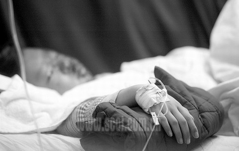 一間病房大門敞開,門外靜悄悄的。門口坐著4個(gè)男子,沉默地吸著煙。病房臨窗的病床處,6個(gè)燈泡一直亮著,床架上掛著可愛的小白兔和kitty貓。一個(gè)小女孩默默地看著懸掛的玩具,她叫彬彬 (化名)。記者靜靜地看著她,不忍打擾。只要一說話,彬彬被燙傷的臉部就要牽扯動,痛得直掉淚。