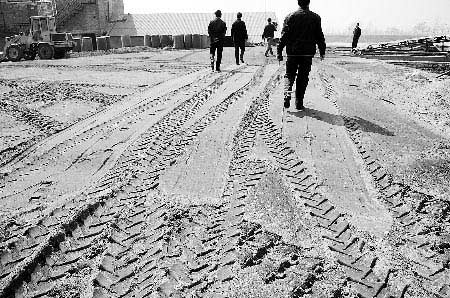 昨日上午10時許,省環保局監察總隊負責人孫自臣帶領執法隊員來到一片煙囪林立的磚窯場,穿過一條煙塵滾滾的土路后,執法隊員看到在一堆高10多米的礬土礦石后面就是被舉報的土煉制廠。