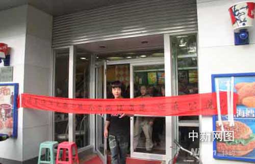 在派出所3次出警無(wú)效下,憤怒的陳女士做出了在肯德基店門(mén)口 拉橫幅攔顧客的舉動(dòng)。而肯德基方面更是以鎖住店門(mén)把陳女士連同當(dāng)時(shí)還在就餐的10幾名顧客一起困在了店堂里。時(shí)間長(zhǎng)達(dá)一個(gè)多小時(shí)。最后還是在圍觀群眾的憤怒聲中才打開(kāi)店門(mén)。