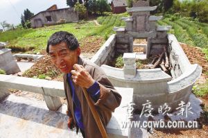 昨上午,云陽縣國土部門工作人員在建民村7社進行調查,督促孫金云通知出資建墓者配合拆墓。