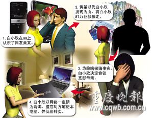 為應付天天喊拿錢回家的母親,白小欣通過QQ聊天,以一夜情作誘餌,與外地來渝(重慶)出差的男子開房,先后騙走4臺筆記本電腦。