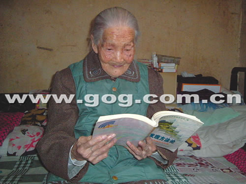 老人雖已106歲,卻耳不聾、眼不花,還能看書、寫字、看電視,而且記憶力還非常好。老人喜歡獨處,兒孫們多次要接她去一起住,可早已習慣當地生活的老人卻不愿意去。老人平時生活節儉,三餐以清淡食品為主。有時遇到身體不適,金沙縣醫院都會派人給她治療,每逢春節等節慶日,還會給她送來許多慰問品。老人心地善良,熱衷于當地的公益活動,前不久,當地修復城關的名勝古跡時,她還積極捐資600元。談到新舊社會的對比,她說,舊社會兵荒馬亂,雖在醫院工作,卻也吃不飽、穿不暖,常到野外去挖野菜充饑。解放后,生活安定了,日子過得越來越好,不再為吃穿發愁,政府又時常給予各種照顧,“新舊對比簡直是兩重天”!(陶慶忠 龍軍 本報記者 朱光倫)