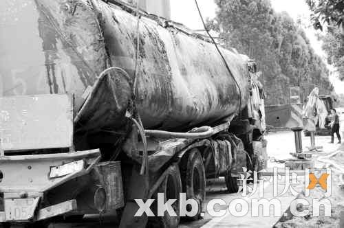 廣州增城一超載車側翻泄露6噸硫酸(圖)