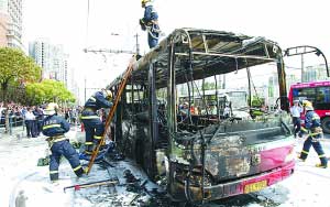 那站下車的人多。上海工業(yè)大學的張怡幾乎是被擠下去的。走了兩步,她突然聽到后面人聲嘈雜,回頭看,842路燒了起來。