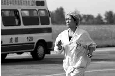 傷員很快就被轉移到120急救車上,他們要被送往成都。杜娟返回了飛機,“家里還有好多病人”。事實上,從大地震爆發后,禹里羌族鄉衛生院的醫護人員就一直在治療傷者。兩個多小時后,杜娟再次隨飛機往返來到廣漢機場。她有了兩天的“假期”,她說要去找自己的丈夫,帶著一個紅色磚頭大小的小包。如果找不到,她還要重回禹里,帶些藥品回去。“北川縣城能找到人的地方都找了,不可能找到了。”她的哥哥說。(記者 駱永紅 徐一龍 攝影)