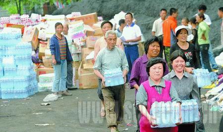 記者隨洛水鎮(zhèn)黨委副書記、發(fā)放救災(zāi)物資的指揮長(zhǎng)宋德芝走進(jìn)政府大院。大院門口由武警把守,這里是洛水鎮(zhèn)收發(fā)救災(zāi)物資點(diǎn)。大門口的右側(cè)放著礦泉水,堆積如山;旁邊是食品,而幾間房子里堆放的是被套!耙蚴瞻l(fā)點(diǎn)改了,現(xiàn)在這里不再接收救災(zāi)物資,只需將救災(zāi)物資全部發(fā)放!彼贿呎f(shuō),一邊忙著清點(diǎn)大院的東西。