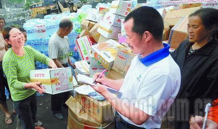 “我們有8個(gè)人,分布在大院的幾個(gè)方位。”他說(shuō),每天,來(lái)自云南、重慶、貴陽(yáng)等全國(guó)各地的車輛是一輛又一輛,他們運(yùn)送的有水、面包、蔬菜。采訪中,記者注意到一個(gè)細(xì)節(jié),張華峰把捐贈(zèng)救災(zāi)物資的單位和個(gè)人都親切地稱為“客人”,熱情接待,如實(shí)記錄。令張華峰感動(dòng)的是身邊的一些普通人。負(fù)責(zé)卸貨的武警官兵忙完活之后,他們?cè)匦菹,從不喝一瓶救?zāi)水,吃一塊救災(zāi)面包。等待大卡車裝滿救災(zāi)物資,張華峰將車上物資一一記錄在冊(cè),水50件,方便面60包。洛城村主任方遠(yuǎn)福在登記冊(cè)上簽完字后,坐上卡車出發(fā)了。