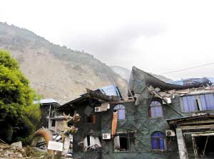 在救災工作安排妥當后,回龍溝溝口傳出消息,有一所“農家樂”整體坍塌,死了很多人。