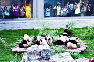 記者還了解到:昨天傍晚,8只大熊貓到達北京動物園時,國內外近百家媒體的記者和數百名游客夾道歡迎。