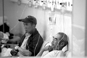 昨日凌晨2時,幾名毒氣受傷者在朝陽醫院接受治療。朝陽區豆各莊發生氯氣泄漏,上百人被疏散。本報記者 楊杰 攝