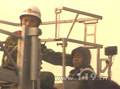 女子距離地面近30米,指揮員命令用云梯車將特教老師送到高壓電塔附近的一個二層樓樓頂,近距離與女子溝通,可就在云梯車剛剛啟動的時候女子又扔下一張紙條,“你們的車如果再靠近我就跳下去”,云梯車只好原地待命。