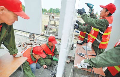 5月19日上午,都江堰市聚源中學130余名學生走進嶄新的鋼結構校舍,朗朗的讀書聲再次響起。這是災區震后第一所開課的學校,也是外埠捐建的第一所校舍。這座中學和綿陽市八一帳篷小學的援建者,是唐山抗震救災志愿者、青年企業家皇甫志友。有人問援建兩所學校的花費,皇甫志友反問:“數字真的那么重要嗎?”