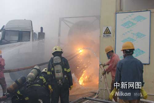 據該公司相關人員介紹,大貨車兩個槽罐共裝載了18噸黃磷,13號晚上從貴州運抵南寧后,一直就停在公司里面。上午10點左右,靠近車頭的槽罐底部突然泄漏,泄漏的黃磷遇空氣后自燃,導致火災的發(fā)生。