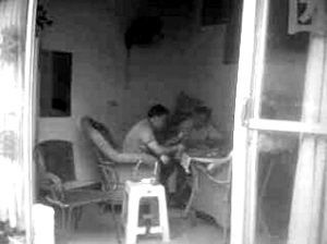 網友“善良老百姓”還在論壇里貼出兩張抓拍的照片:兩名穿藍色T恤的男子,拿著撲克坐在桌前,桌上散亂地鋪著現金;第三人的面目沒出現在畫面里,但可以見到其伸出的一只手。從照片的畫面判斷,拍攝者當時站在房間外。