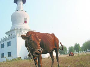 2001年開始建設2002年建成的阜陽科技生態園,園內游客稀少,圍墻外是連綿的麥田。