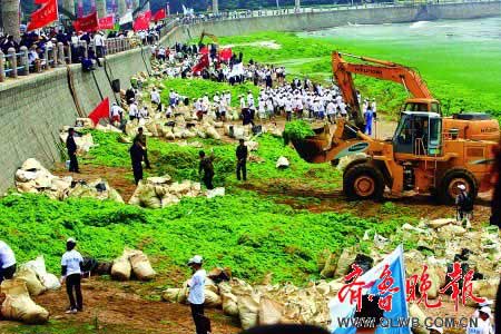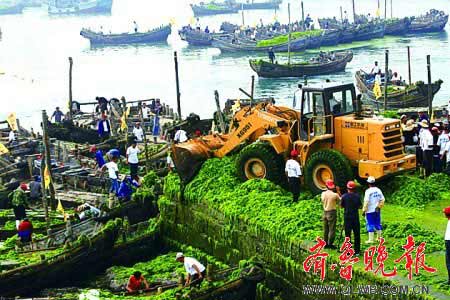 自接到預警信息后,青島市第一時間啟動了應急監視監測。截至28日,青島市政府動員全市上下投入滸苔清理工作,從海上、潮間帶、岸邊進行全方位的打撈清理,努力將滸苔的不利影響降到最低,為舉辦奧帆賽創造良好的海域環境。截至目前,已有數萬人、千余艘各類船只、數十臺裝運機械投入到清理行動中,清理滸苔數量超過10萬噸。