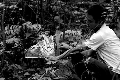 昨日,記者在一名曾擔任國家林業局華南虎調查隊向導的當地村民帶領下,終于尋訪到鎮坪縣神豬灣(以前被媒體誤為神洲灣)周正龍所拍虎照造假現場。在調查中,有目擊者稱周正龍拍虎下山后獨自離開;通過現場還原,記者發現利用華南虎年畫偽造華南虎照片并非難事,周正龍拍假虎過程應系其一人所為。