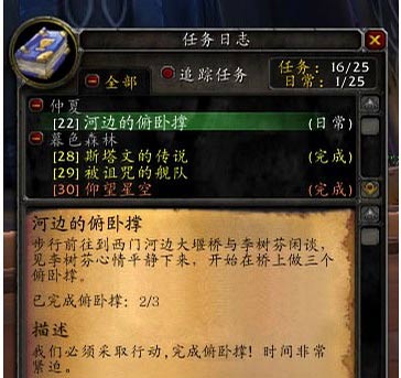 由于“俯臥撐”忽然躥紅,網游“魔獸世界”里也隨即出現了一個名叫“河邊的俯臥撐”的任務日志。(來源:新快報 記者 喬麥)