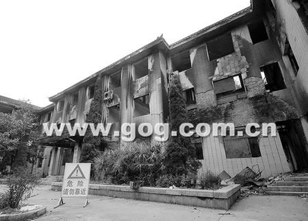 張佑祥介紹,縣委大樓始建于解放初,系磚木結構,在“6·28”事件中,被不法分子焚火燃燒,致使整個大樓的木質部分全部被燒毀,造成上下頂樓的水泥壓板開始傾斜脫落,已成危房。該縣已決定今日起徹底拆除這棟大樓,預計在10個工作日內將拆除的大樓清運干凈,新縣委大樓是否在舊址重建暫無定論。記者昨日來到這棟已有50余年歷史的三層建筑前,發現雜亂的廢墟中仍冒出縷縷黑煙。