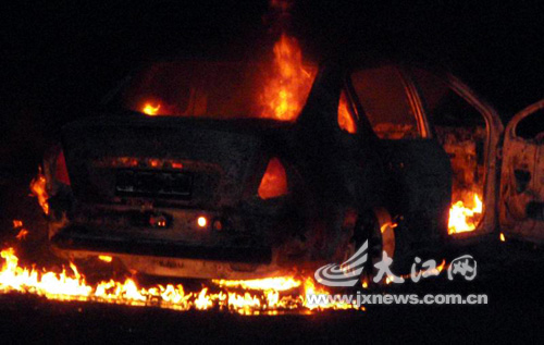 江西一高速公路上兩車相撞一車焚毀(圖)
