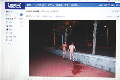 這篇帖子名為《校內網上驚現清華紫操裸奔圖》。文中稱,有3名學生半夜在紫荊操場裸奔,并在校內網上傳了照片。據了解,他們是清華大學美術學院應屆畢業生。記者隨后看到了這組題目是“清華少數人的裸奔節”的照片,共50余張。照片內的男子均半裸或全裸,做出各種姿勢。全裸的照片在隱私部位打有馬賽克。