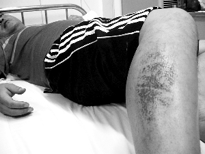 昨日,在積水潭醫(yī)院等待手術(shù)的齊景華說,當(dāng)時車速太快,他還沒來得及反應(yīng)就被“撞飛了”。