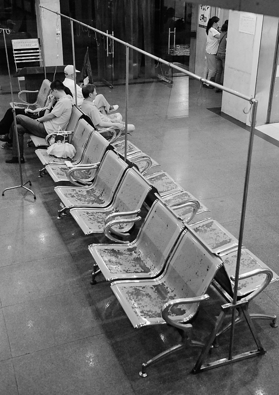 “我去之前先打聽了一下,說要排10多個(gè)小時(shí)的隊(duì),掛號(hào)的人都聚集在醫(yī)院急診的抽血化驗(yàn)候檢室,那里有椅子可以休息。”陳女士在下午5點(diǎn)半左右來到醫(yī)院,候檢室里已有十來個(gè)外地模樣的人等著了,三三兩兩,有男有女。