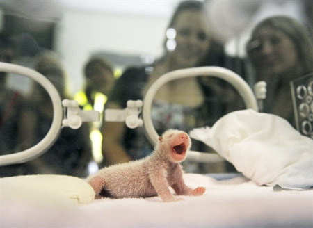 從7月26日17∶24至7月27日06∶55,成都大熊貓繁育研究基地的大熊貓在14小時內順利產下了三胎四仔寶寶,同一個種群的大熊貓在短短的時間內如此密集地順利產仔,在全球大熊貓繁育史上尚屬首次。這批震后成都首批新生大熊貓寶寶,顯得彌足珍貴,意義深遠。