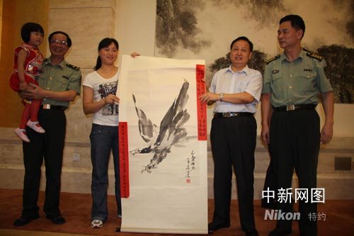 母拉詩易母女向湖北省委書記羅清泉贈送書畫作品。 劉宇 攝