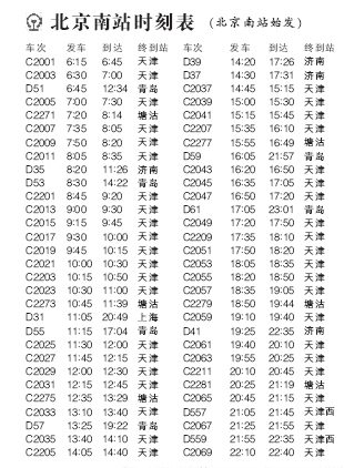 ●除了京津城際列車,北京南站同時(shí)也發(fā)售所有北京站、西站始發(fā)的列車車票。