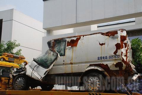 下午2時(shí)45分,經(jīng)過2個(gè)多小時(shí)的顛簸,這輛被損壞的運(yùn)鈔車被運(yùn)到了博物館。據(jù)介紹,地震時(shí),這輛運(yùn)鈔車剛好停在樓下,劇烈的晃動讓樓房部分出現(xiàn)坍塌,運(yùn)鈔車的車頭被嚴(yán)重?fù)p毀,車頭完全變形,車身也多處被擦傷。