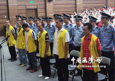 九江中院院長陳堅親自擔(dān)任該案審判長,并當(dāng)庭宣讀了判決書,一審以故意殺人罪、搶劫罪、盜竊罪,數(shù)罪并罰,判處被告人吳曉劍死刑,剝奪政治權(quán)利終身;以故意殺人罪、盜竊罪,數(shù)罪并罰,判處被告人任忠杰死刑,剝奪政治權(quán)利終身;以故意殺人罪、搶劫罪、盜竊罪,數(shù)罪并罰,分別判處被告人楊曉大、吳曉安、王曉海有期徒刑十七年、 十四年和十三年;以搶劫罪和盜竊罪數(shù)罪并罰,判處被告人劉曉剛有期徒刑七年。同時,判決被告人吳曉劍、任忠杰、王曉海、楊曉大、吳曉安共同賠償附帶民事訴訟原告人許俊谷景的母親、妻子及女兒許可的經(jīng)濟(jì)損失共計人民幣284410.22元。
