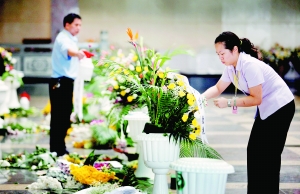 昨天上午,在廣州殯儀館銀河園的白云廳里,來(lái)自廣州市殯葬一線的79名職工,分別參加了“挽聯(lián)插花”、“業(yè)務(wù)洽談”、“治喪禮儀”三個(gè)專業(yè)的職業(yè)技能鑒定競(jìng)賽。來(lái)自國(guó)家民政部和廣州市民政局的考官們,全程見(jiàn)證了這場(chǎng)特殊的考試。