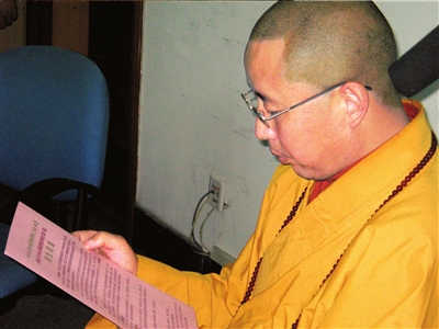 填寫好報名表,釋宏永的手機響起,僧袍里,他熟練地摸出一部智能手機——事實上,他還有聯想筆記本電腦、開著越野車、印有名片,這些都“很現代”。在他看來,寺廟不能脫離現代社會而存在。這次汶川大地震期間,釋宏永參加救援隊伍,帶路營救出45名群眾,并一直堅持在災區一線抗震救災,個人化緣為回龍溝災區買回1萬多斤大米賑災,在當地被傳為佳話。