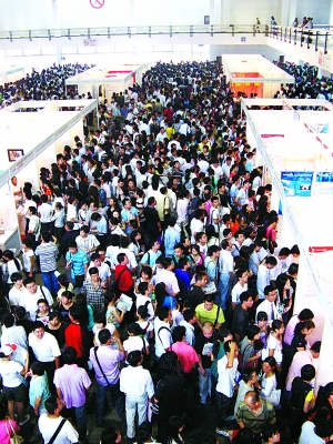 國(guó)展的2、3、4號(hào)展廳中人頭攢動(dòng),中國(guó)礦業(yè)大學(xué)行政管理專(zhuān)業(yè)大四學(xué)生王琛手拿一個(gè)文件夾在眾多展臺(tái)中尋找適合自己的崗位。王琛說(shuō),夾子中有志愿者證、一大摞簡(jiǎn)歷和奧運(yùn)服務(wù)心得,其中還夾了一張她與“新飛人”博爾特的合影。奧運(yùn)期間,王琛作為工人體育場(chǎng)的志愿者出色地完成了服務(wù)奧運(yùn)的任務(wù),奧運(yùn)結(jié)束后,已經(jīng)大四的王琛開(kāi)始謀劃自己的出路。