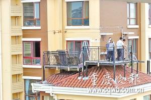 小區(qū)物管公司技術(shù)部人員也在現(xiàn)場幫忙,他們說,由于“吊腳樓”地處32樓高空,又懸在一尖角屋頂上,拆除起來難度較大,“預(yù)計(jì)還要一天才能拆完。”