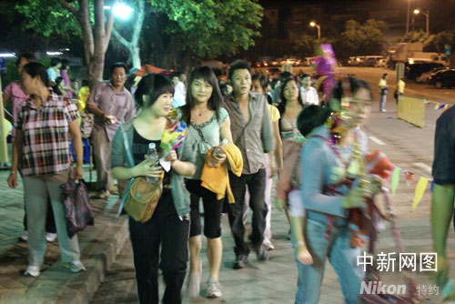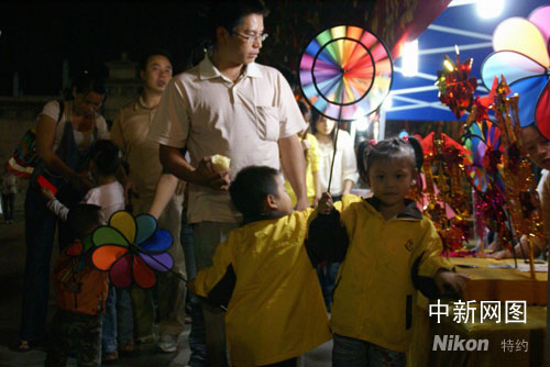 6日晚上21時,逛“狗仔墟”的游客們開始登高上山,小孩子手持風車,迎風而跑,歡歌笑語灑滿登山路上。南海西樵山上的幾大景區已經爆滿。