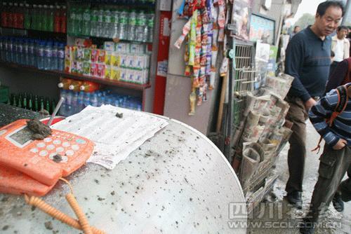 干雜店老板張敏不斷地從屋里掃出泥水。據(jù)她說,下午3點20分左右,她正在店里清理商品,忽然聽到“砰”的一聲巨響,然后就聽到“轟轟”的聲音,緊接著飄來濃濃的刺鼻氣味。張敏忙往外一看,離店鋪僅兩米印有“成都排水”字樣的綠色施工防護墻不斷晃動,沙石隨著黑色的煙霧直沖進屋子,“我以為又地震了。”張敏愣了足足一分多鐘,才想起來要往外跑。跑到門口時,她看到整條街上一個行人都沒有了,其他店鋪的商家已往安全地帶跑去,慌亂之際,她來不及拉上卷簾門便直接往一環(huán)路方向跑去。