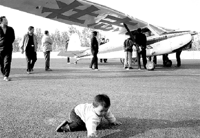 “一輩子沒坐過飛機(jī),這回要試一試。”一個(gè)老大娘向何壯志走過來,要坐飛機(jī)。