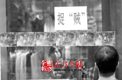 該店宋店長介紹,9月26日下午,他們服裝店4件衣物被盜,價值600多元,他們沒有報警,而是在監控視頻上截取幾張圖,沖洗成照片張貼出來讓大家觀看,說是引以為戒。